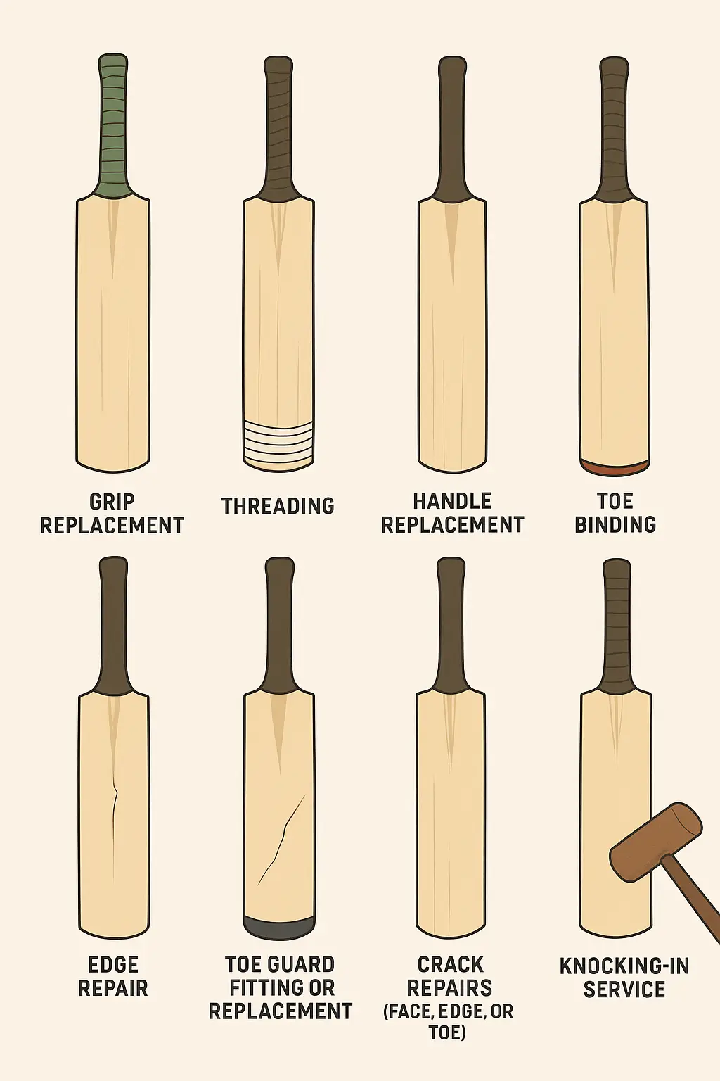 All Kinds of Cricket Bat Repairs โ In-House Bat Doctor